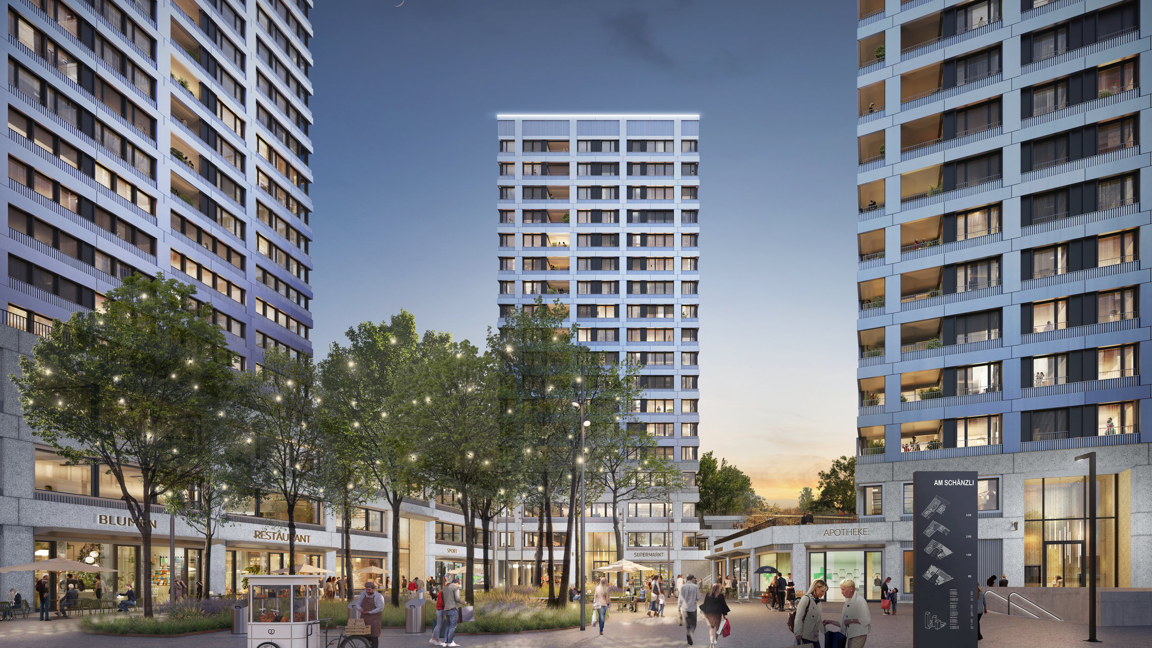 Bedeutendes geschieht AM SCHÄNZLI. Erfüllt von städtischem Flair, umgeben von kraftspendender Natur entsteht in Muttenz an der Grenze zu Basel ein neues Quartier – eine vielfältige Lebenswelt auf rund 18'000 Quadratmetern Grundfläche. Drei moderne Hochhäuser bieten Wohn-, Arbeits- und Lebensraum für jede Generation: Hier ist alles da für sichtbar mehr Leben.