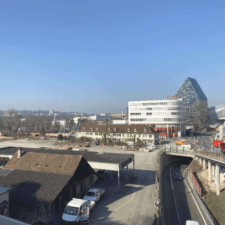 Wie sieht er aus, der Blick in die Zukunft? Mit unseren beiden 360-Grad-Panorama-Bildern lässt sich das neue Quartier AM SCHÄNZLI erkunden.